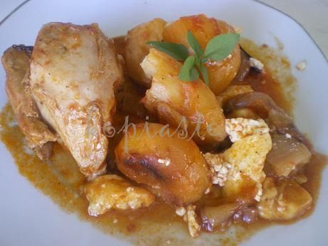 Bardouniotikos Kokoras Rooster Stewed With Fetakokoras Bardouniotikos Stewed Rooster With Feta Greek Recipes Stew Recipes Feta
